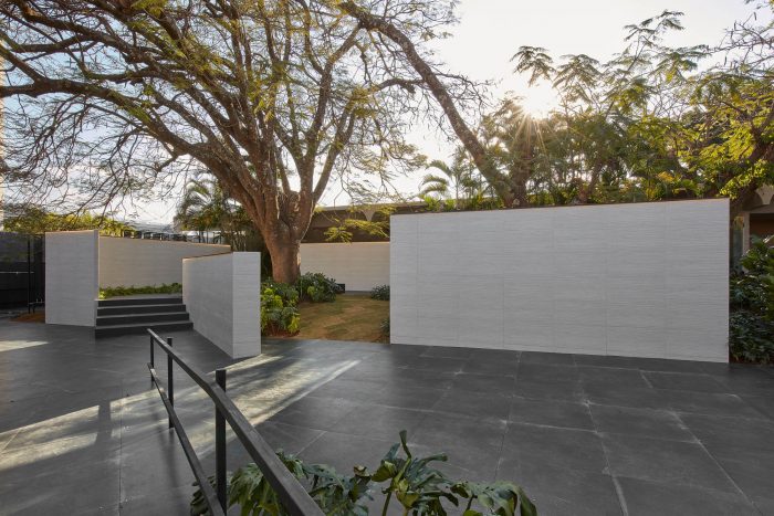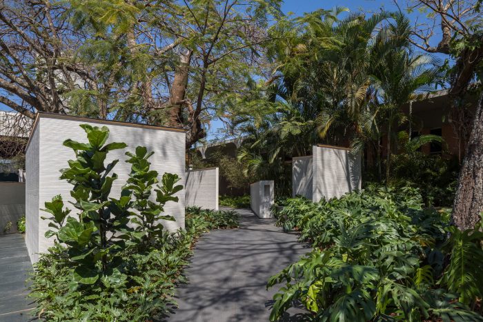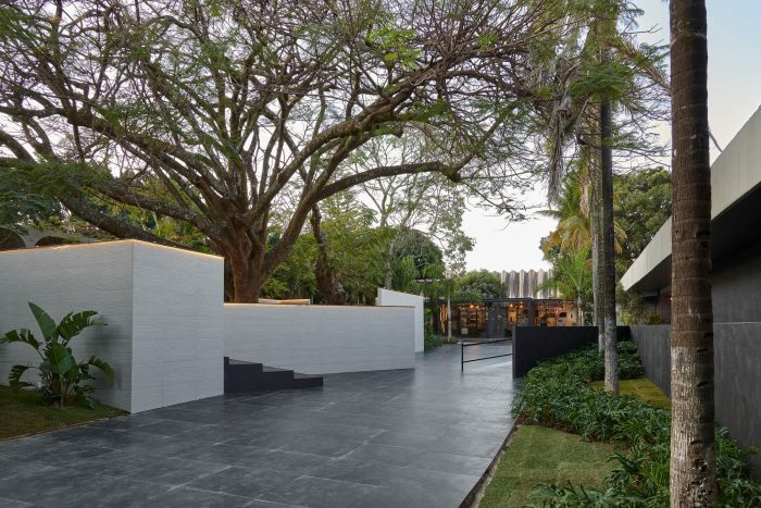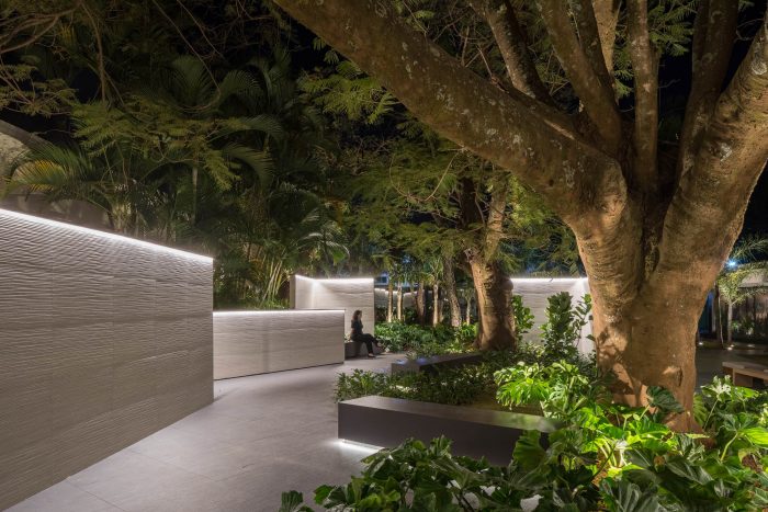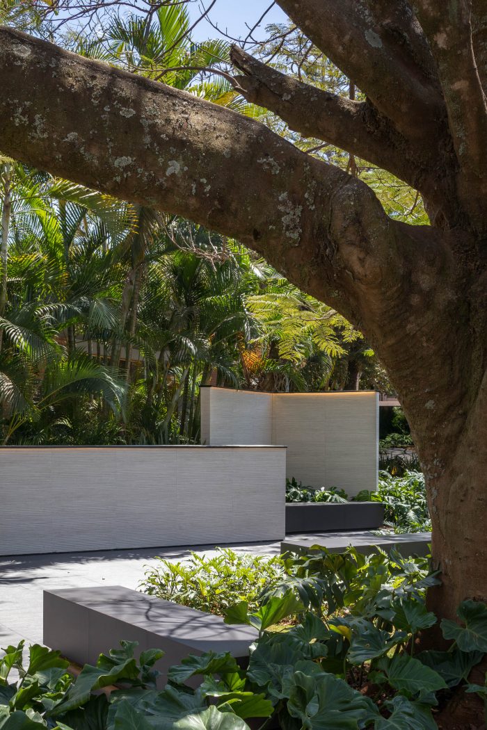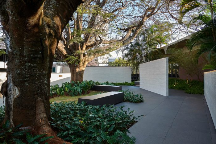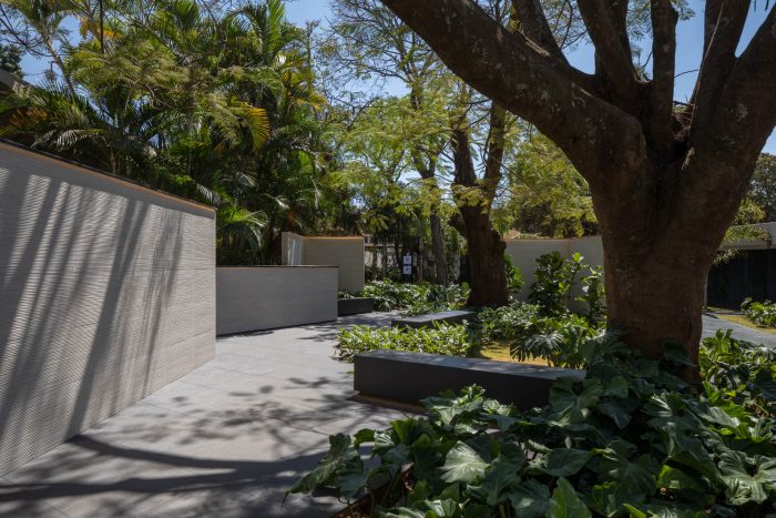 The space is the result of the work of several teams, all in tune; Marina Pimentel signs the landscaping that has enhanced the existing trees and the route, highlighted living spaces with benches made of the same floor material that will facilitate moments of contemplation, the Manufacturing helped us curate artists and exhibitions, and finally worked with the internal team.