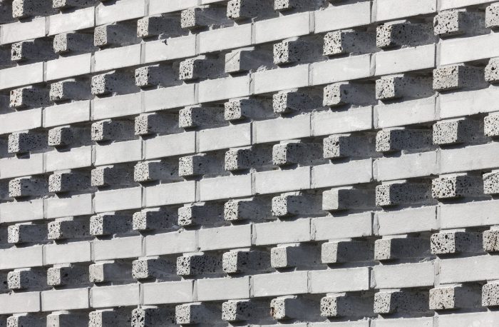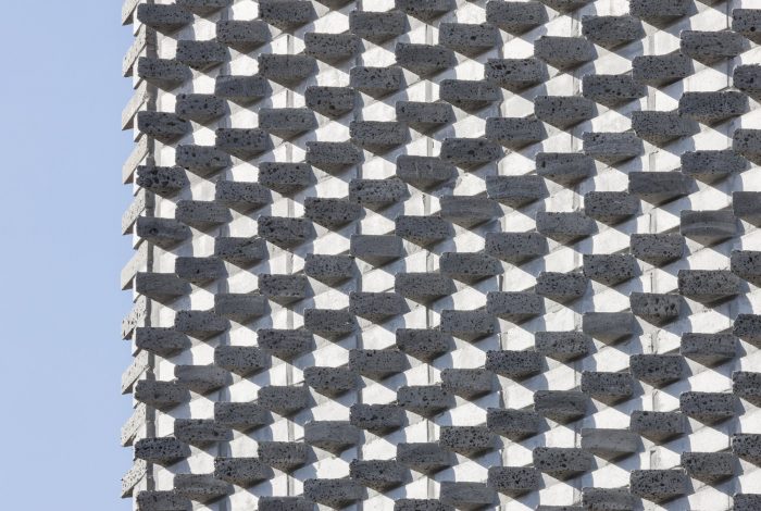 两段式玄武岩砖与一般的砖块重新组合,并通过压花和雕刻部分改变了垂直和水平的形式。这些变化是由砖的特征引起的,因为材料在对比中呈现出地层的变化。玄武岩的粗糙孔隙给我们提供了重新组合的表面内的材料的基本信息。砖块通过重新组合的形式揭示了它们的存在,浮雕和雕刻改变了光线的角度。材料被重新组合,图像被重新构造。