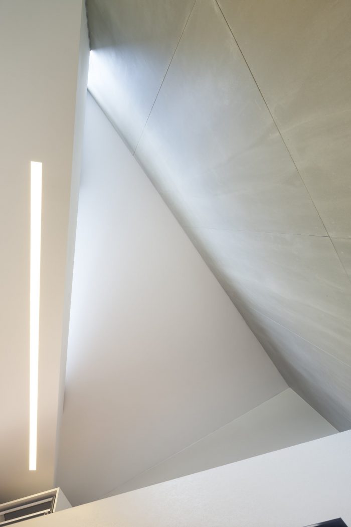 屋顶的高度是不同的,所以灯光从东、南、西不同的角度射进来。由于从窗户射出的自然光,人们有可能感受到建筑内的季节性变化。这是一个光学空间组织,可以克服北侧的物理弱点,并获得最大的太阳光。此外,自动上窗在夏季将室内的热量排到室外,使南面和北面的门窗可以交叉通风。这个项目的设计是基于自然对流,以创造一个生态友好和热效应的空间。