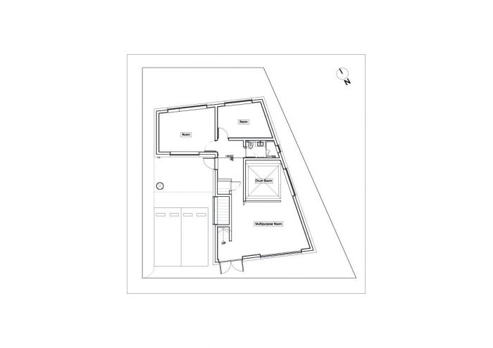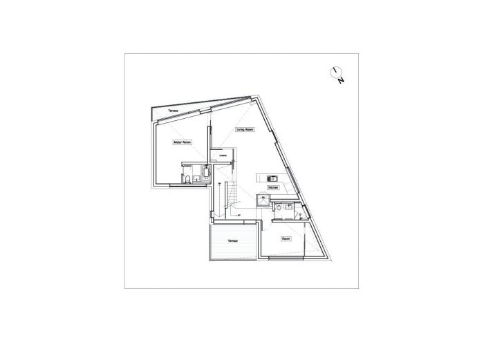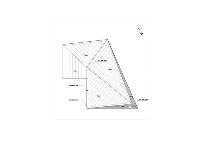 Optimal allocation of flat surface and lights from a high position. The Master Room and Living Room were allocated in north to capture the beautiful scenery. In this case, the plan design has a weakness that the natural lights do not come into the rooms. To solve the problem, it was designed to have a difference of height, with the roof divided into four parts, so that the light could come into the rooms.