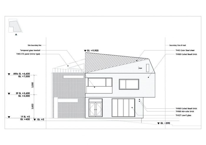 It has a closed view being next to other buildings in the south, while facing the north from which Cheonggyesan is seen. Therefore, this project had its functional limitation that the houses couldn’t get the beautiful view in the north if the important rooms were arranged in the south for the natural sunlight. The project began with this incompatible situation which had to be resolved.