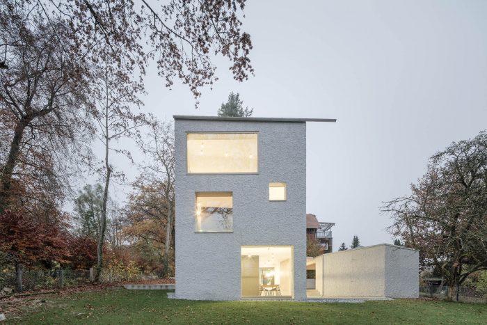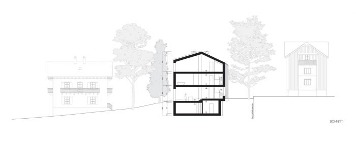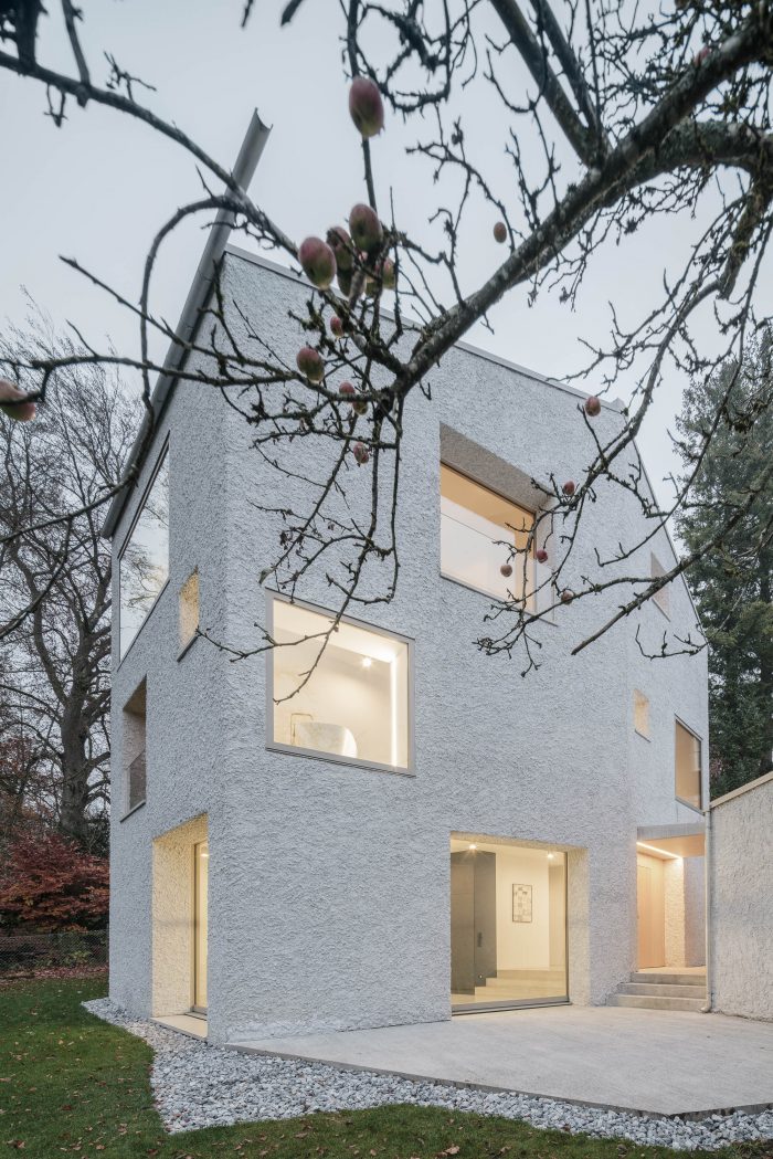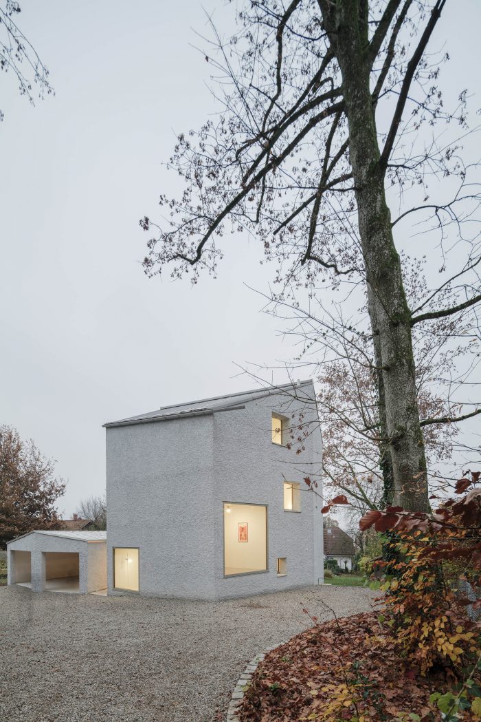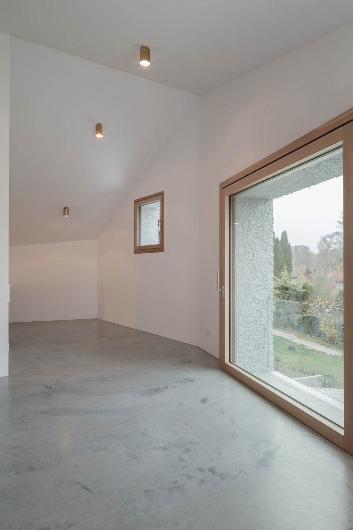 为了考虑到树木的数量,并能够体验到安代赫斯修道院在安美尔湖上的远景,该建筑的立方体和邻近的建筑一样,像塔一样耸立起来。为了增加这种高度感,规划了整整三层楼,顶层是一个客厅。一扇大窗户透过树梢,可以看到安美尔河与安代赫斯修道院和后面的阿尔卑斯山的迷人景色。厨房作为家庭日常的中心,与底层的花园相连。