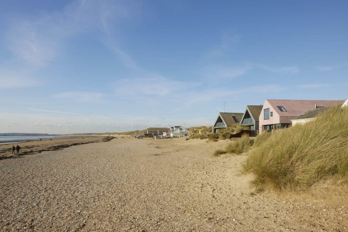 Sea Breeze is located on Camber Sands beach in East Sussex, directly backing onto the natural sand dunes behind and with outstanding views across the beach and the English Channel to the south. The site is unique in that it is one of only a handful of properties in the region that are only accessed by driving along the beach making the construction extremely challenging.