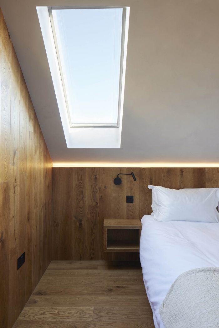 该建筑通过两个90米深的钻孔和一个MVHR系统进行加热和被动冷却。密封的外部围护结构也有很大的热质量,这导致了一个高度节能和舒适的房产。三层玻璃窗的设计也大大减少了外部声学影响,这在恶劣的暴露环境中是一个重要的考虑因素。