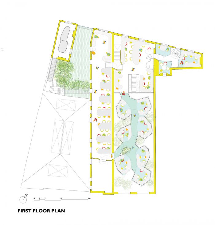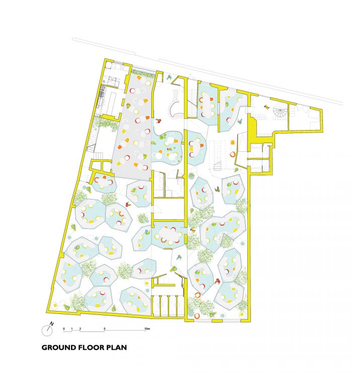 Scale due to the dimensions of the site. It is made up of five existing buildings which all together are only 800 sqm, and all of them different in periods and shapes. Scale due to the amount of history in the place. Blow Up, Michelangelo Antonioni’s movie, was filmed here. It was filmed in the studio of Vogue photographer John Cowan, and the actor David Hemmings was working in the spaces which you can still recognise in the movie. A few years after that, Richard Rogers had his studio here, his very first personal studio, after winning the competition for the Pompidou Centre.