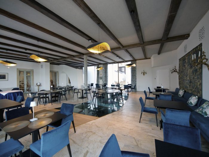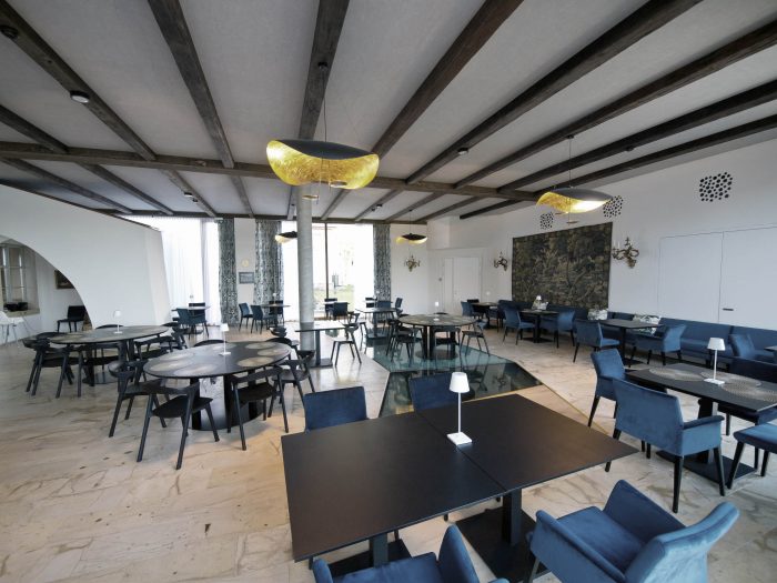 The rooms open to the east and offer an impressive view over the water surface up to the high mountains of Sudete.To supply these earlier mentioned ponds with fresh water, an artificial stream from the mountain rivers was created in the 17th century. Due to its historical significance, the stream is now clearly visible to visitors under glass in the multifunctional hall.