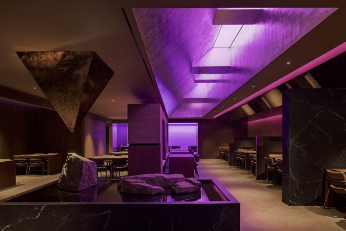房间使用高高的天花板,创造出一个宏伟的空间,光线倾泻而下,表达出稳定和隐私。大津清流为空间的每个场景提供了不同的体验,但照明系统为每个白天、夜晚和季节创造了不同的灯光,所以你可以享受丰富空间的乐趣。空间遵循古典美学,并试图提供一种感官体验,以专注于它的原味。