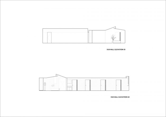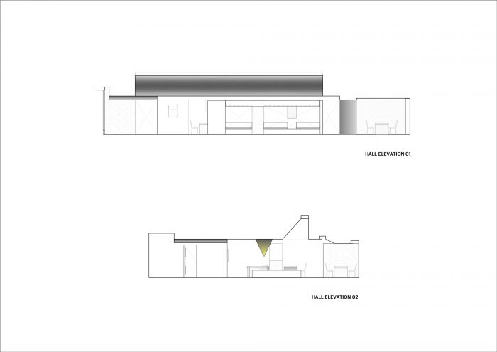 The finishing material of the wall expressed the naturalness of the material using warm-toned special paint, and in the semi-room inside the hall, wood material was used to give another spatial independence within the space. In the semi-room, the use of the front barrisol expressed minimalism. The central wall has a built-in table configuration that can look empty to increase the density of the space. Next, the hall in the room area was designed using the structure of the gable ceiling. Although the high ceiling of the space was utilized, the large scale of the hall area gave another spatial fun with the design. The center side is the same as the hall, and the works of artist Tae-soo Lee are arranged and used as a wide waiting space. The entrance wall creates an impactful space using a printed barrisol that expresses the concept, and the wood sheet is used to create a clean space to increase the unity with the hole and contrast it at the same time.