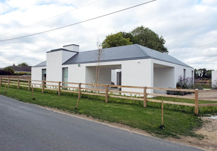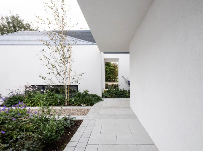 We were commissioned to design a new 3-bed house for a family with historic connections to Ratoath Village in Co. Meath. This family was deeply rooted in the area and therefore it was important that this house would gel effortlessly into its surroundings. The form and layout were inspired by the local vernacular and in particular, the Irish farmhouse typology which exists throughout the region. The building was organized around three courtyards and three chimneys.