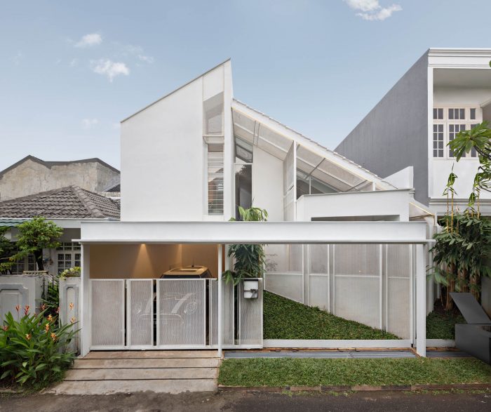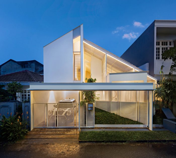 This project is a residential renovation project located in Jakarta. It was first built in 2002 as Half House, which is a one-story house with an area of 100 m2. As family members grow, clients need more space in this house. The existing building can't meet the client's needs in terms of space and design programs. The client requires an additional bedroom and bathroom as well as a sitting room. The rooms in this house are a bit narrow but have a high ceiling. To maximize the ceiling height, additional space is placed on the top floor, but still considered the height of each floor.