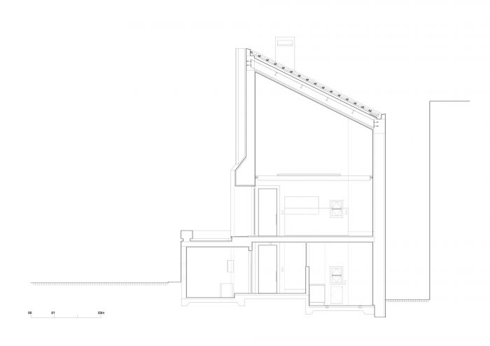 The ground-floor is where technical areas are located, kitchen, lavatory and storage. An elevator allows for disabled people to access all the spaces.