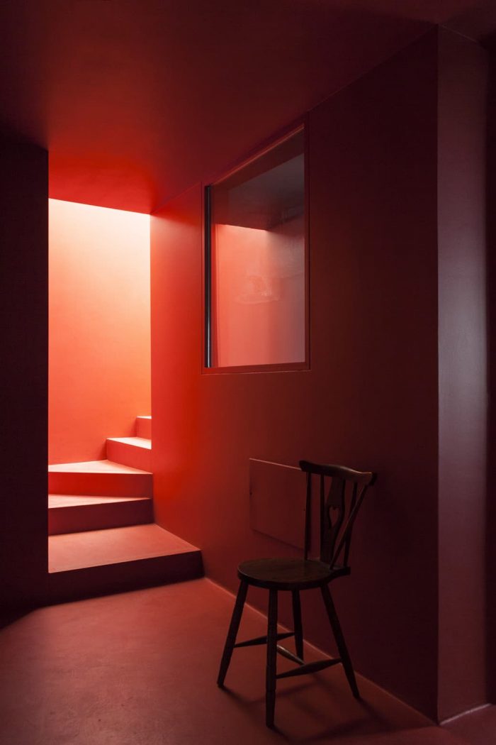 外部楼梯作为内部空间的一个延伸。由于其尺寸较小,只有24平方米,我们选择了允许其向外延伸。在温暖的日子里,法多可以在上部的室外平台上演唱,把它变成一个舞台,向广场和城市开放。