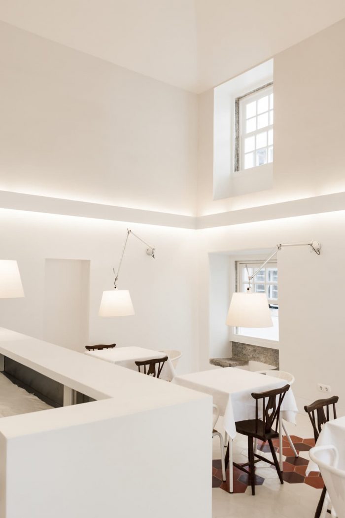Casa da Severa features a café/restaurant that can be accessed directly from the square by a staircase, which acts as a continuation of the public space. Its main room takes part of the maximum height available taking advantage of having hollowed its interior, having at its highest point 6,50 m. One of the walls of its interior is prepared for video projection.