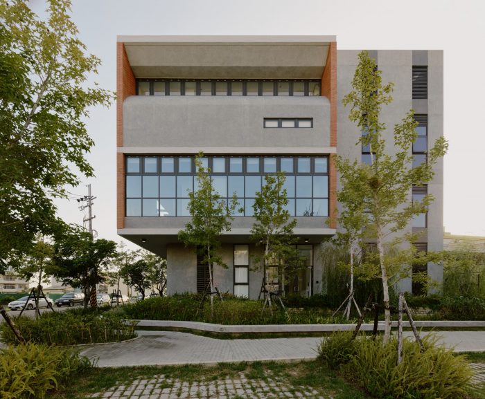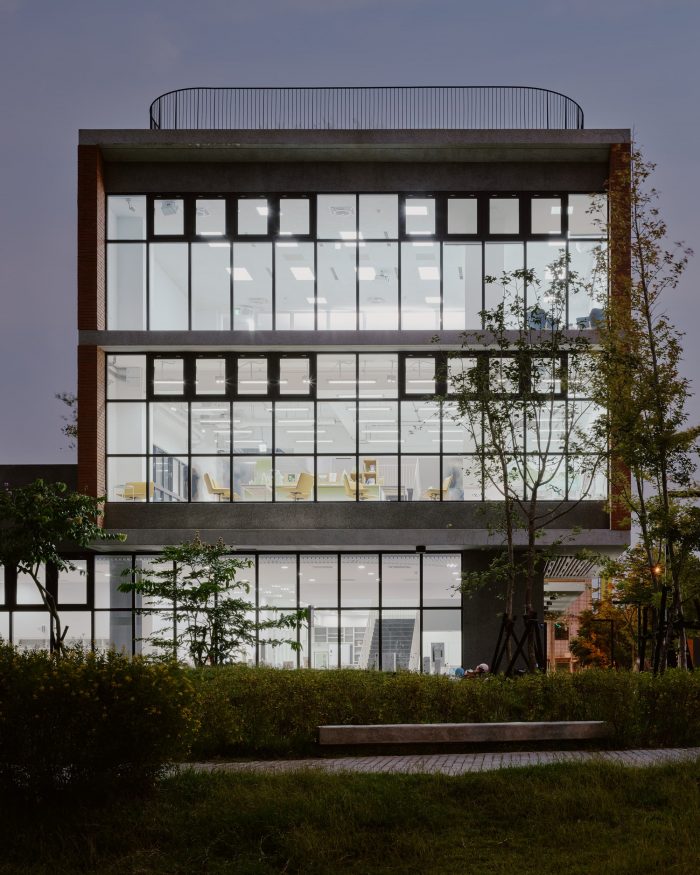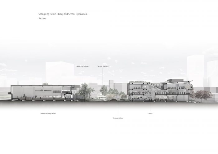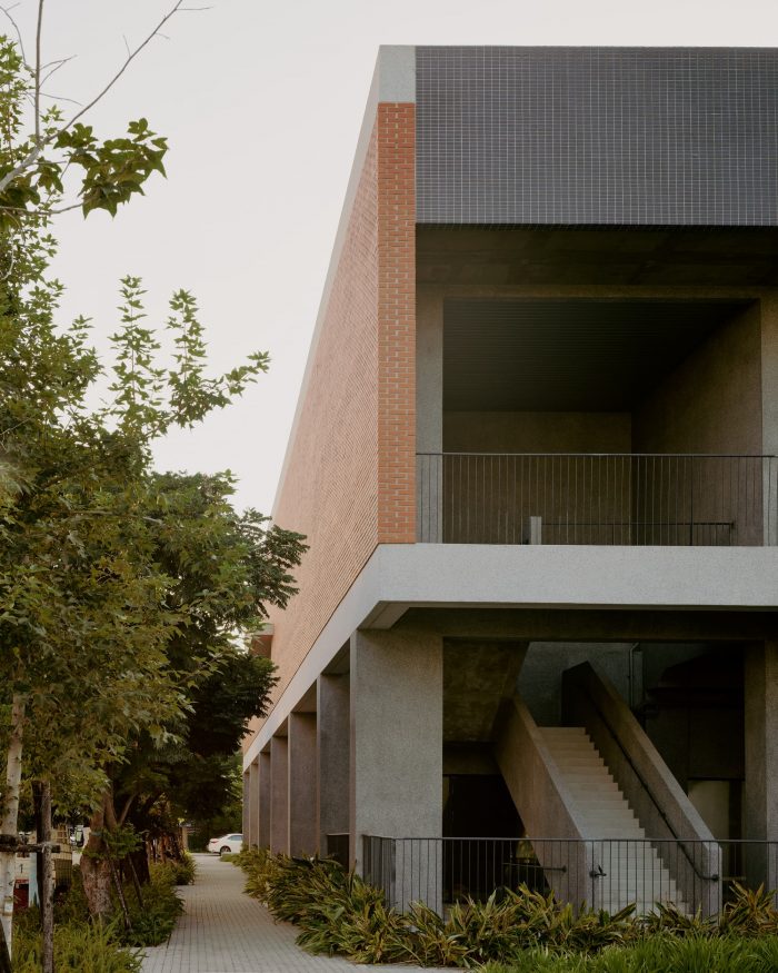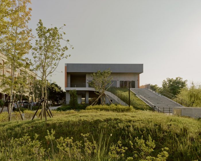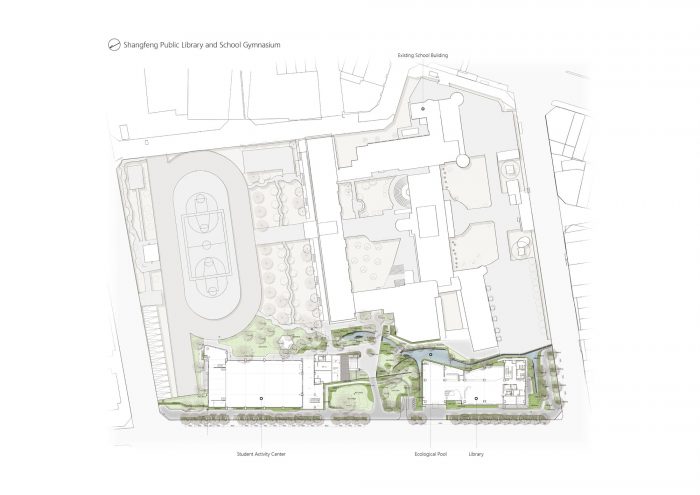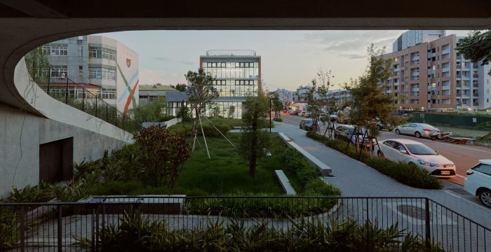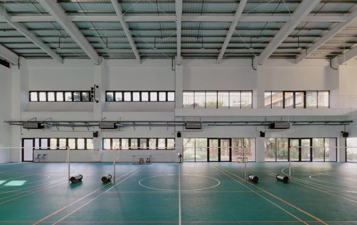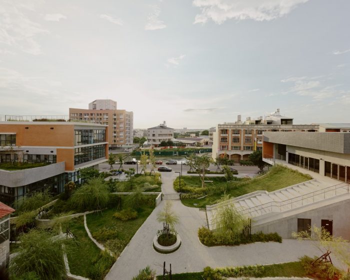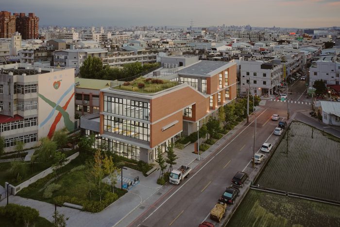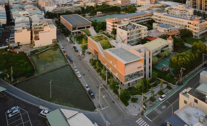 The project locates at the fringe of Taichung City. Like most rural areas in Taiwan, it is densely populated with low-rise residential buildings and farmland, however very few areas are reserved for public amenities. It has called for a library for the community and a school gymnasium, right next to an existing primary school. The challenge of this project is more than just simply placing these two buildings and programs in a very difficult site but creating a sense of place through expanding layers of activities, natural conditions, tectonic details, and ambiance. Because the site is very long and narrow, buildings have to be distributed at two ends of the boundary. These two buildings shall face each other and create a communal square in the middle. The square becomes the new focus as well as the new side entry for the school which knitted the community and school even closer. Outdoor terraces, roof gardens, and a ramp projecting out from these two buildings try to extend the periphery of the communal square.