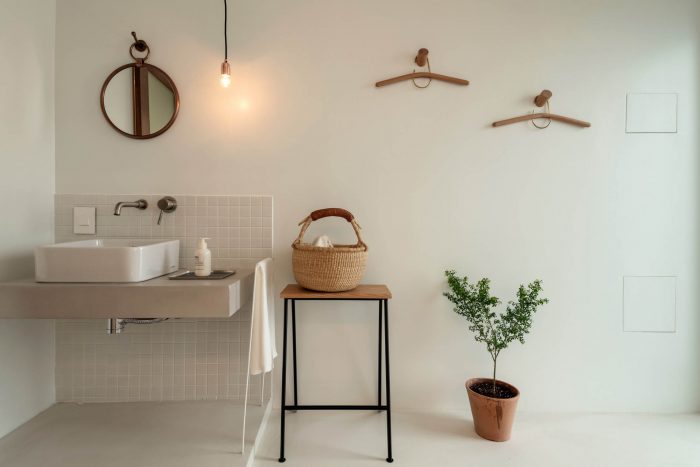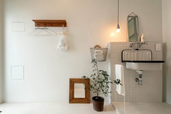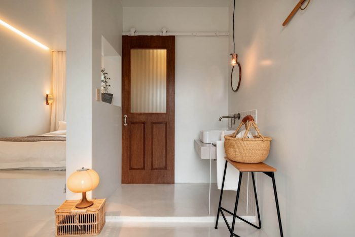 Though guests fill the house now, our client originally planned to make this place home. Thus the space has hints of our client here and there. Because the initial development started in 2015, she started preparations since then. Vintage lighting fixtures that had been stored endearingly have been placed on appropriate spots. In addition to the lightings,there are delicate traces of caretaking everywhere, arising from many small and thoughtful details.