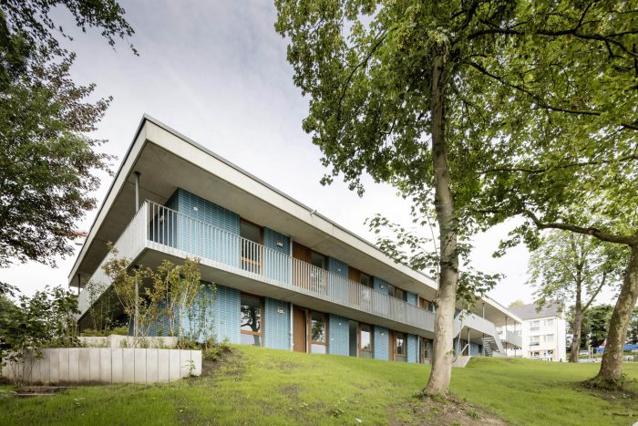 在德国埃森(Essen),一座无家可归者收容所的最后两座建筑于2018年移交给使用者。这三座结构清晰、平行的建筑以裸露的混凝土和天蓝色的釉面砖为特征,是埃森市发出招标邀请的结果。
