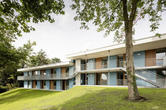 In Essen (Germany) the last two blocks of a homeless shelter were handed over to the users in 2018. The three clearly structured, parallel buildings characterised by exposed concrete and sky-blue glazed bricks are the result of an invitation to tender issued by the City of Essen.