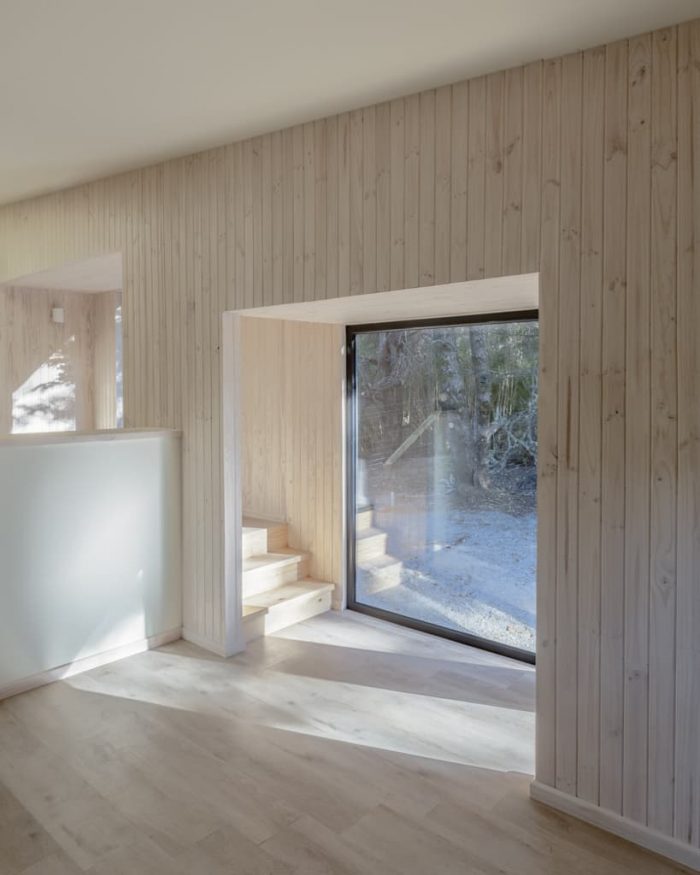 To the north there was a wooded area, which became the landscape towards which to open the main views. Accordingly, the project is a single horizontal space on the east-west axis that opened up with large openings to the forest.