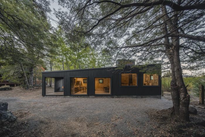 The height of the trees makes it difficult for light to enter through the large openings, which is why it was decided to open a skylight in the highest part. Despite being a mono-space, the floor generates an unevenness that raises the bedroom to give it greater separation. The project was built mainly in wood by local carpenters.