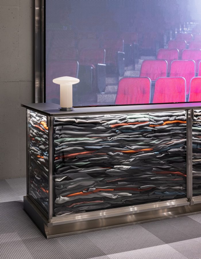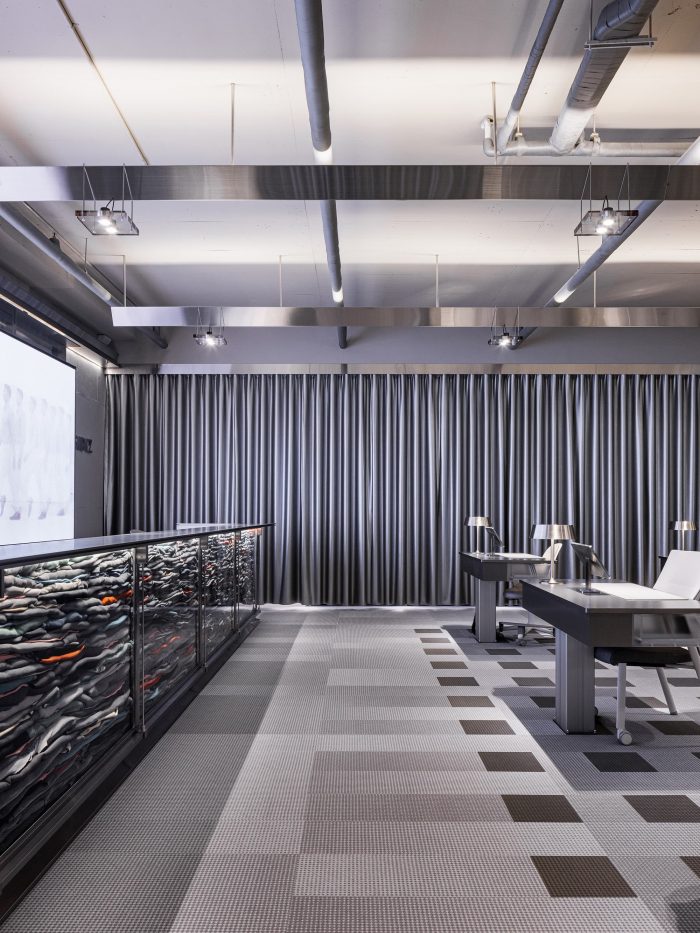 The Sitting Experience Zone is a design element that focuses all eyes on the center through silver curtains, focusing on a new way of "sitting experience," and space with internal and external twists to maximize curiosity and "sitting experience." To this end, a motion desk was produced separately to check if you sat in the right posture, and you could focus on the chair so that you could find your own chair by fully sitting, experiencing, and exploring it. Compact user experience design and space design that honestly reveals the functional and rational framework of the brand doubles the appeal of the flagship store. The media wall is also an important factor in eliciting an integrated experience. The centralized structure helps the immersion of the image. This arrangement is often used in churches or classrooms, but just by placing chairs facing the media wall, the attention on the video is increased.