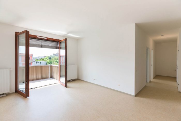 The SlimBuilding® system (Patent Dr. Winfried Kallinger) was our answer. This innovative, composite system combines slender steel columns with cast-in-place ferro-concrete floor slabs, generating open, non-directional spaces with neither cross-beams nor load-bearing walls. SlimBuilding® reduces construction time for the building shell by half – and efficient construction is a basic requirement for rapid housing, as well as an essential parameter for its rentability. The project must be amortized within fifteen years, and the construction costs could not exceed €1.200,- /m² (£1.080,--/m²) – which is about 20% less than other housing estates that use typical means of construction. SIE/Home21 optimizes the potential of the SlimBuilding® system. The floor plans use a strict, highly economical grid that is ideally suited for both housing units and for future commercial use. The loft-like spaces have ceiling heights of 2,82m and can be subdivided in many ways. The initial programming reflects the social concerns of the Rapid Housing Program. The compact yet well-organized apartments are to be rented to low-income tenants, many of which are recent arrivals in Vienna. In the first floor of the north-west tract is a centre for single-mothers; the ground-floor of the south-east tract houses assisted-living for the elderly. Many of the tenants are recovering from recent bouts of homelessness, and Home21 represents their first apartment after years of living rough. The complex has no cellar and is not built-out below grade.