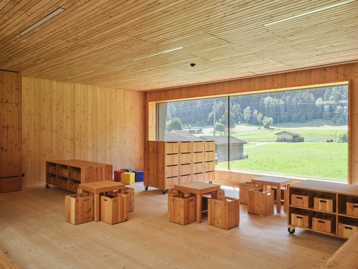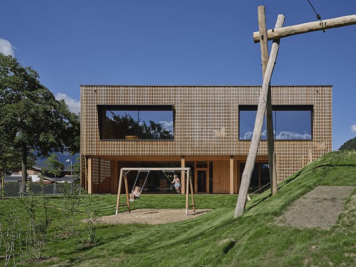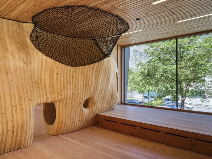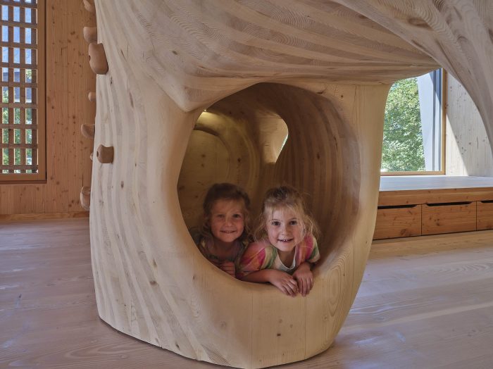 Just outside an Austrian village, surrounded by forested mountains and crisp, clean air, one finds a kindergarten where nature takes centre stage. Wood, wood, and more wood form the educational setting for the children’s play and learning. Architect Armin Neurauter and his team won the competition for the design of a new type of preschool with room for life, development, and didactic stimulation for the children.