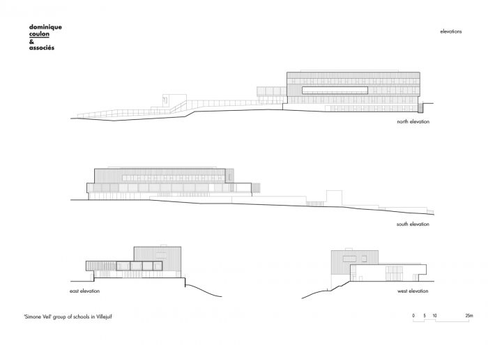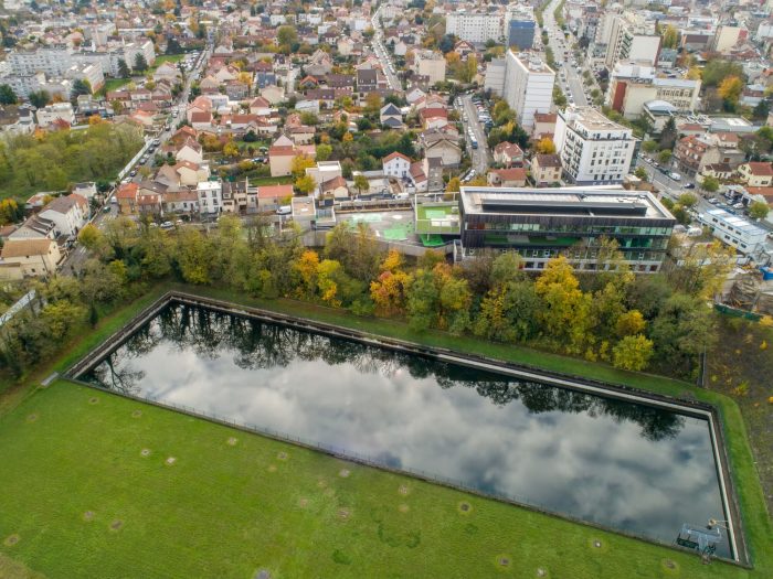This group of schools is part of the response to the shortage of school premises in the center and northern parts of the town of Villejuif, on the outskirts of Paris. The reservoir site where it is located is exceptional in the town, on two counts: it is protected from sound disturbance, and it has a number of large trees in addition to its water feature.