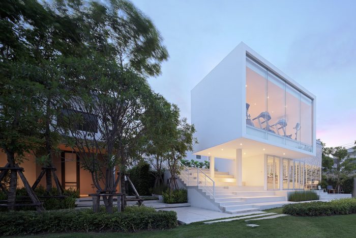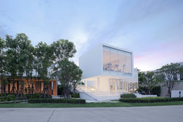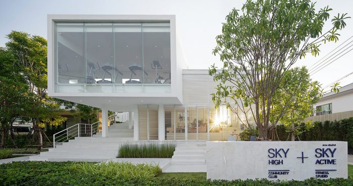 The Sky Clubhouse is a small building facility for a residential project in the suburb of Bangkok, Thailand. This project is served as a functional building for a private housing project, which consists of a small gym on the upper floor, interior living and exterior areas for multi-purpose activities.