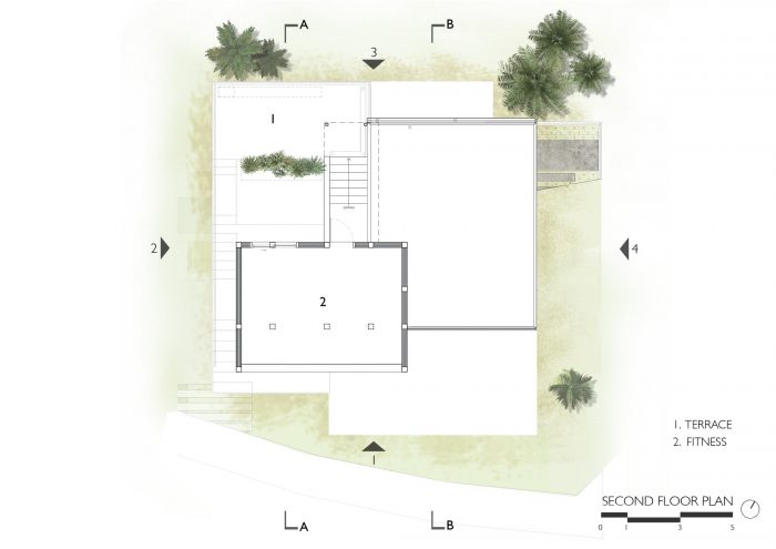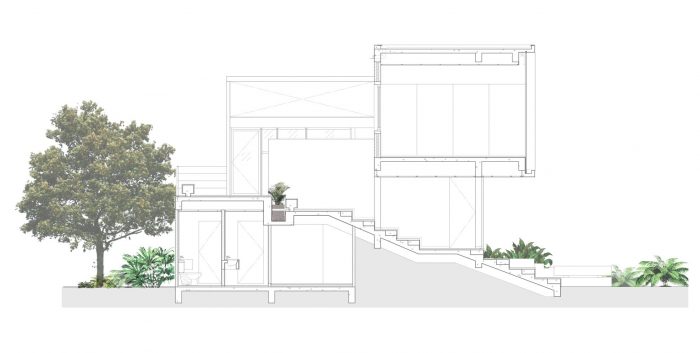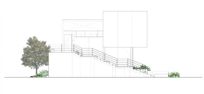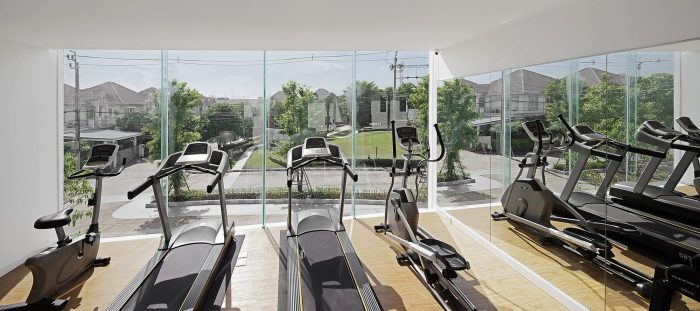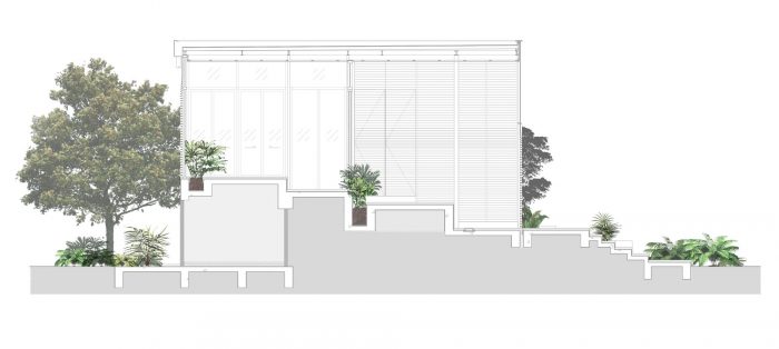 With the limited space, the main idea of the project is to create the open and continuous space that can connect between inside and outside, below and upper levels. The design of ‘stepping floor’ is come to serve as a way to combine circulation, floorplan, activities and landscape that can lead visitor from ground level along the way to the gym on the upper floor. Meanwhile the space under the step has been used to hide all the service area of the building.