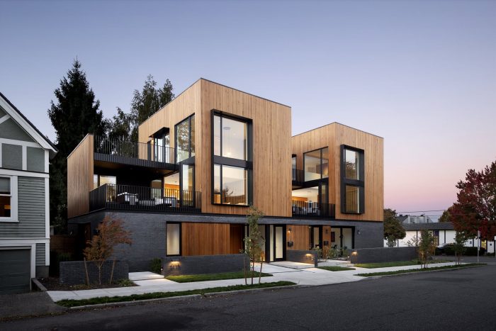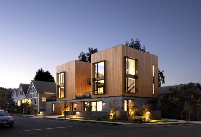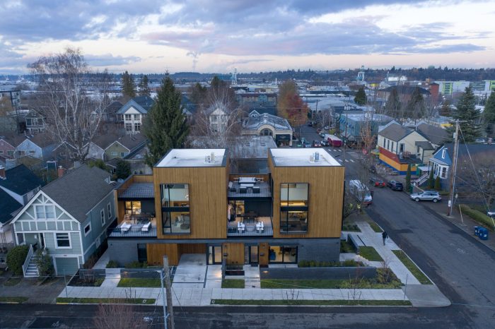 坐落在这个西北社区,Slabtown 4是一个四单元的项目,为一个多代同堂的家庭服务。所面临的挑战是设计两个单户住宅和两个附属住宅单元,每个单元都有私人户外空间和停车场,所有这些都在一个紧凑的占地面积上,以适应狭小的城市地段。四个单元中的三个将由家庭成员居住,第四个作为办公室或提供额外的租金收入。