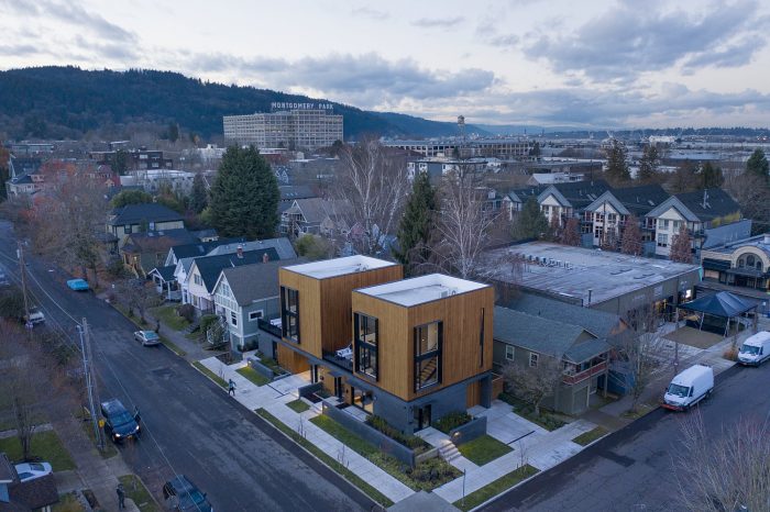 Located in this northwest neighborhood, Slabtown 4 is a four-unit project for a multi-generational family. The presented challenge was to design two single-family dwellings and two accessory dwelling units, each with private outdoor spaces and parking, all on a compact footprint to fit a tight urban lot. Three of the four units were to be occupied by family members with the fourth as an office or to provide additional rental income.