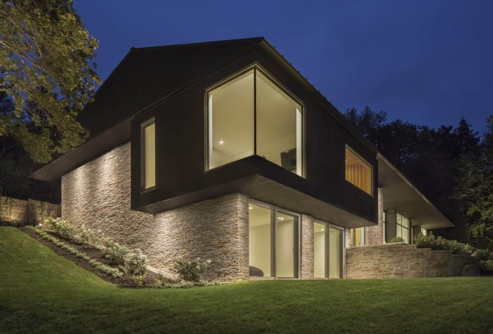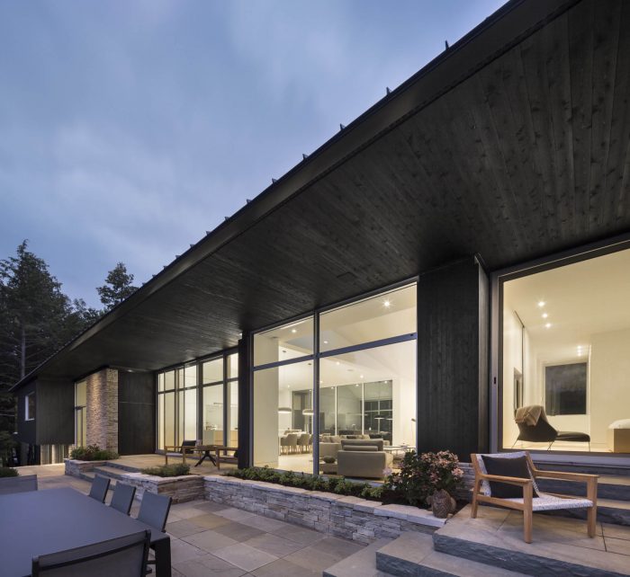 Located in the beautiful region of the Eastern Townships near the US border in Quebec, the Slender House Residence unfolds in a long linear volume. Nestled on the steep shores of Lake Memphremagog it opens-up onto a peaceful secluded bay.