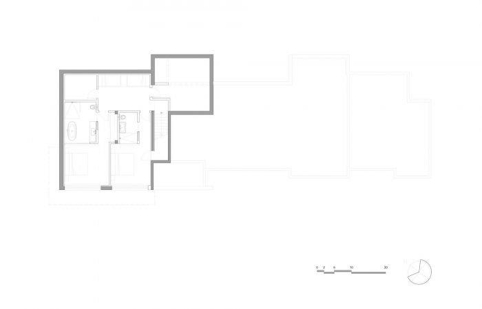 巨大的窗台、天窗和完美无瑕的白墙,使空间充斥着光线,并提供令人惊叹的湖景。天花板有时会达到25英尺高,以扩大这些生活空间的规模。纤夫之家所有的房间都被定位为形成一个单一的线性行。除了主人的套房外,两间带全浴室的高端套房和相邻的小休息室、一间桑拿房和一间培训室构成了这个豪华住宅的程序。一条连接主入口和底层入口的服务走廊,同时也是车库的入口,可以通往一个小的盥洗室、洗衣房和储藏室,通过一个暗门连接到厨房。