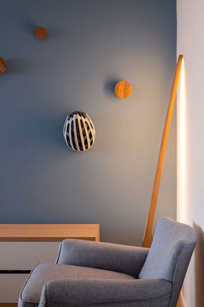 在项目的情感方面,我们考虑到客户有一段时间生活在日本。我们试图通过 "shoji"--用木头和纸制作的日本房屋的传统门--带来一丝乡村气息。我们在细木工板的有节奏的调制中使用了白色富美家与木头的对比,让木头的垂直部分突出,并与沿衬里的板条对齐。一个间接而微妙的提法,提醒居民他在外面的时间。