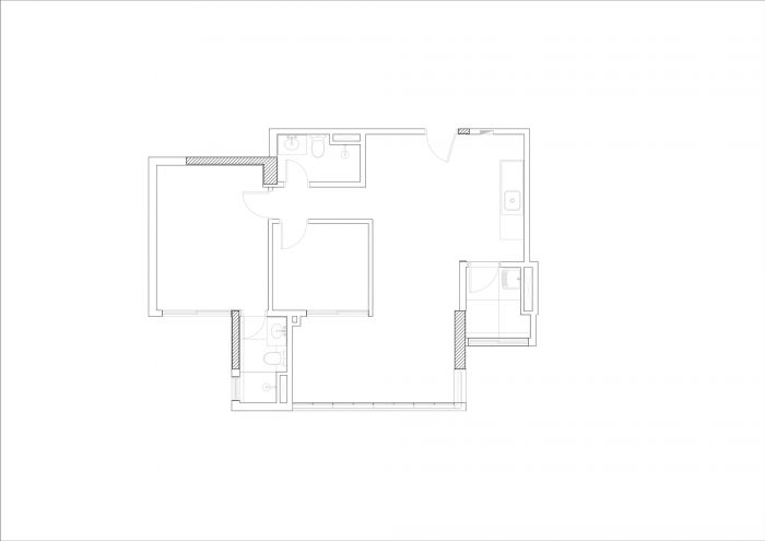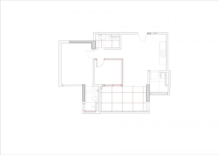这套公寓是其主人生活中一个短暂阶段的一部分。因此,我们专注于使用小橱柜和松散的家具,这样他就可以在将来带走。我们拆除了第二间卧室的墙壁,并将其与阳台连接起来,扩大其客厅,使之成为一个独特的、光线充足的环境。