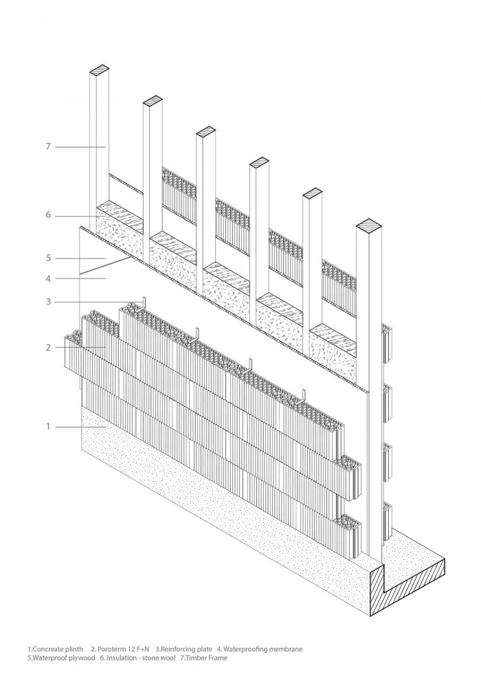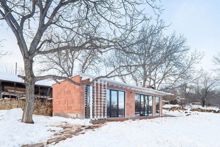 The walls are triple-layered constructed of an inner and outer ceramic bricklayer and stone wool insulation in between. The glazing on the southeast façade frames the view towards the broad hills of the Devetaki Plateau allowing a maximum amount of natural light in the interior. The sunlight in combination with the unobstructed views fades the inside-outside boundaries and integrates the interior as an inseparable part of the exterior space creating a sense of living close to nature.