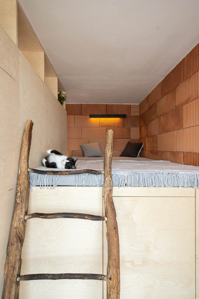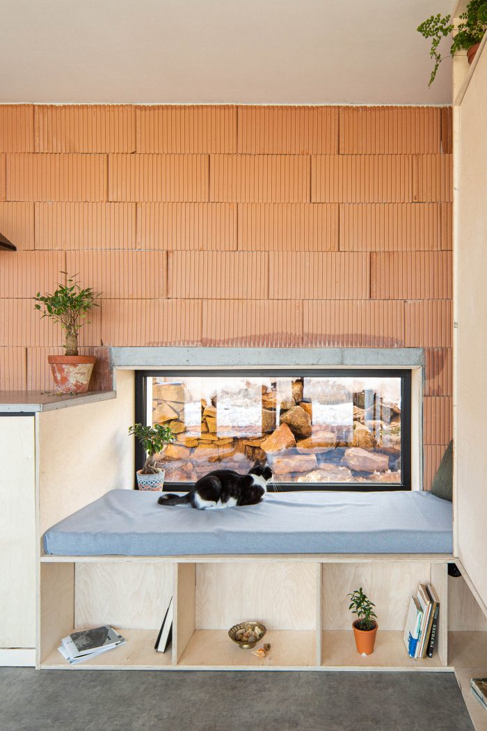 The building is a metaphorical bridge between traditional and contemporary architecture, consisting of the symbiosis of spaces inspired by the vernacular architecture and designed to face the needs of the nowadays life. The small nooks for reading, rest, and contemplation create a special atmosphere and enrich the interior space. In the spirit of this metaphorical link is the very construction of the building. An old Bulgarian tradition existed back in the days, where family members, neighbors, and friends altogether took part in the building process. Following this custom, the two owners built the studio on their own with the help of their closest relatives. This act of up-building makes a reference to the immovable cultural heritage and the material culture of the region.