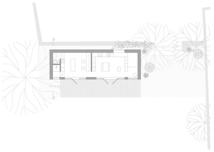 工作室清晰的平面结构和开放的阳光空间为其居民提供了庇护、舒适和创造性的氛围。创造一个简单、诚实和干净的空间是这个项目的本质。使用材料的 "原始 "自然外观是对农村环境的一种和谐补充。粘土曾经是村里房屋的主要建筑材料。在这种情况下,工作室所使用的陶瓷砖是对传统建筑技术的一种现代诠释。使用的材料:陶瓷砖、木材、胶合板和可见的混凝土,结合在一个清晰、和谐的整体结构中,补充了该地的视觉特征。