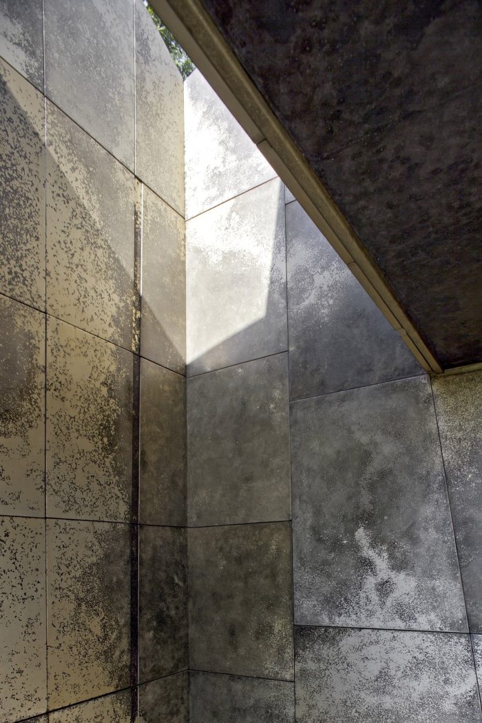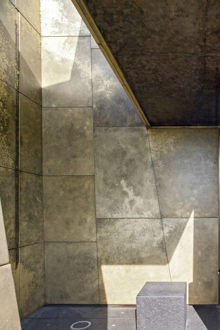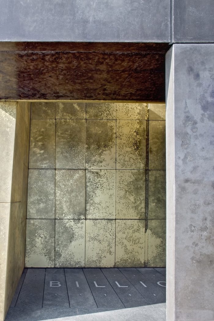 该墓使用了低成本的技术和材料,如阳极氧化铝和混凝土,尽量减少任何装饰性器具,以强调存在的表现性元素的意义和价值。