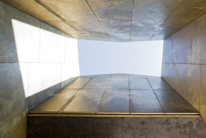 The new funerary chapel opens towards the sky, towards the branches of the trees planted outside the cemetery. A device to tell the passing of time.