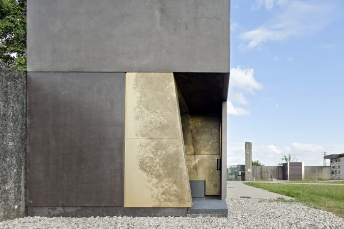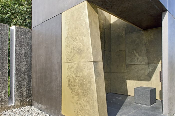 The tomb will measure itself with the passage of time through the choice and treatment of materials. A vertical cut on the cemetery wall connects the new tomb with the funeral shrine located in the old town cemetery.