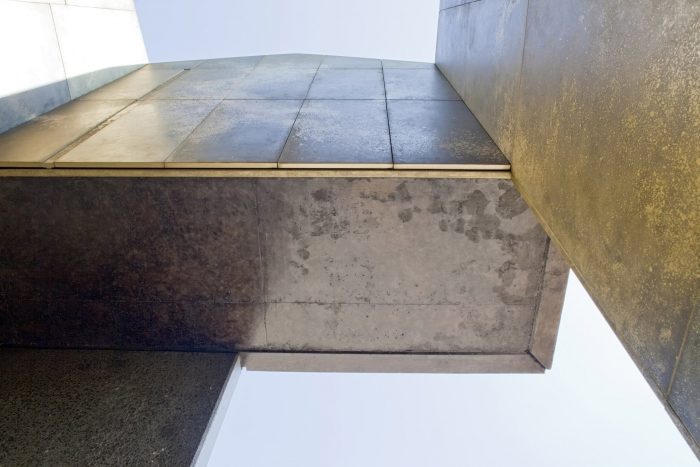The tomb uses poor technologies and materials such as anodized aluminum and concrete, minimizing any decorative apparatus to emphasize the meaning and value of the expressive elements present.