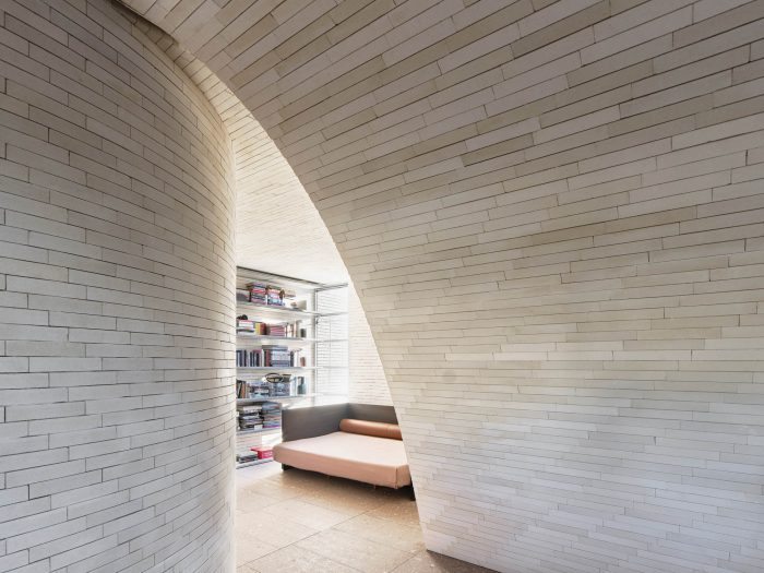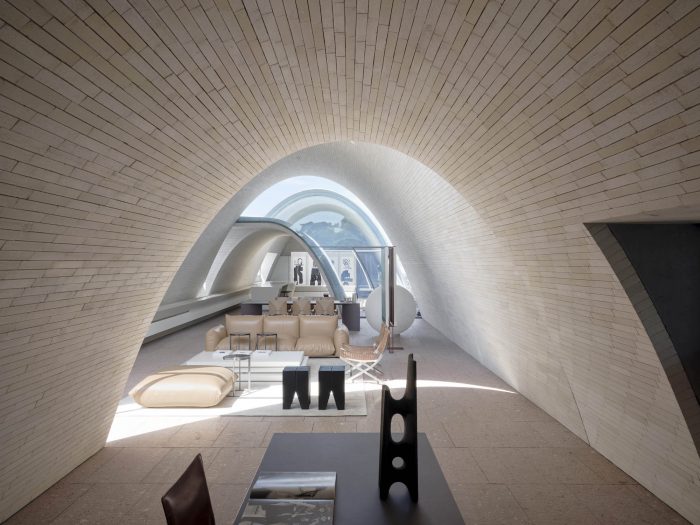 The four self-supporting brick-lined catenary vaults of the caretaker’s residence are a game-changer in interior design. In this space, joinery units cleverly and sensitively unite the 4 vaults and provide storage in a space without walls. The result is a unique and avant-garde approach to interior design and modern living. A true integration of architecture and interiors has led to the success of the building, which is reflective of the studio’s design approach.