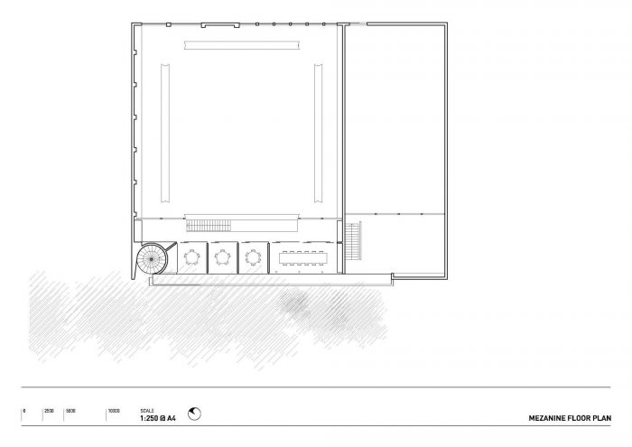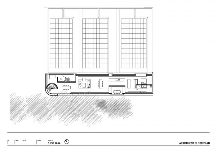 The readapted industrial building houses a purpose-designed studio for Australian multi-disciplinary design practice, Smart Design Studio. A mezzanine with four meeting rooms overlooks the light-filled space through the existing slender steel trusses. A dramatic caretaker’s apartment on the top floor runs the length of the building.