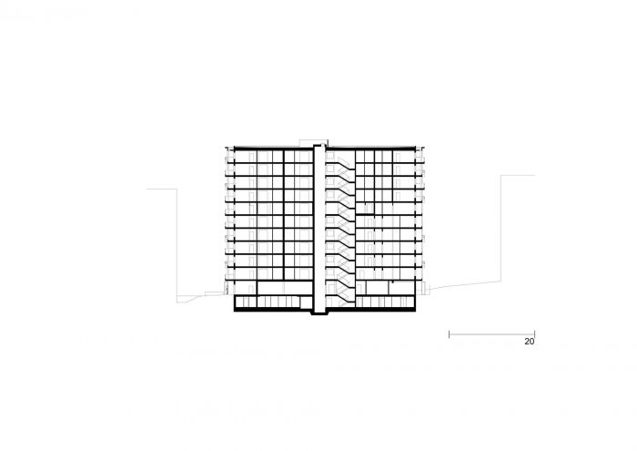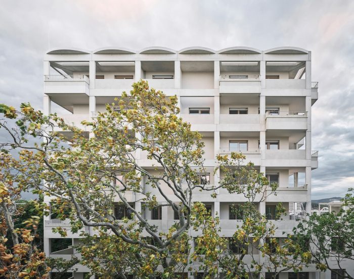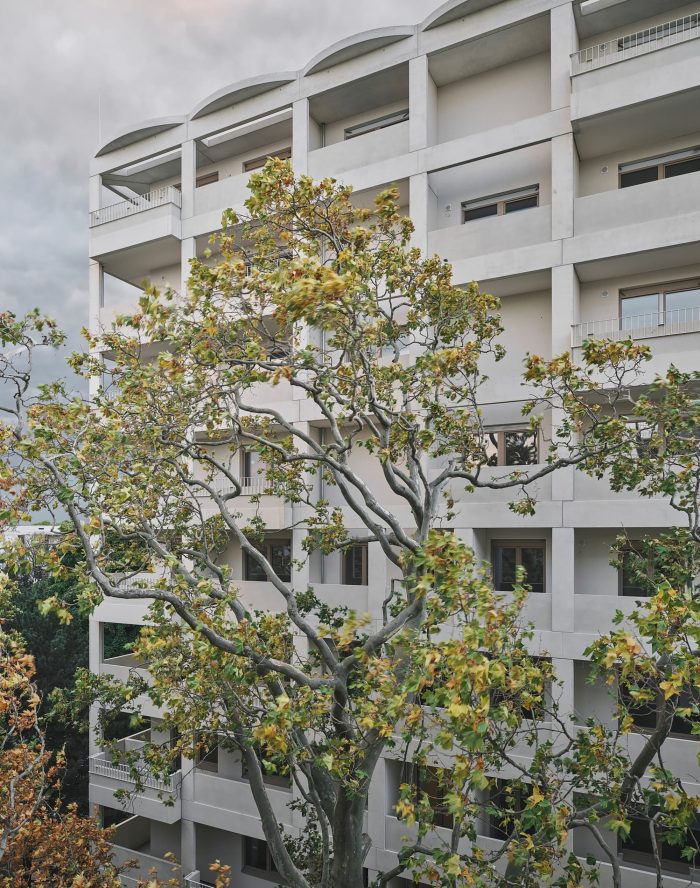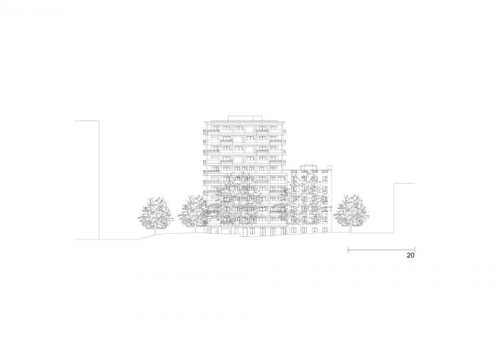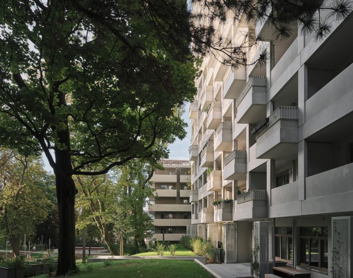 A multi-story loggia building is being erected between the park and the city to create social housing spaces.