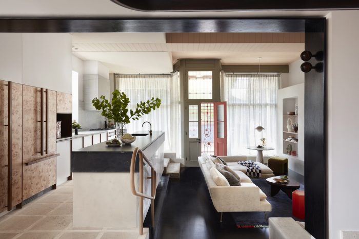 Brief - The challenge was transforming the traditional characteristics of the heritage layout (with its original glass store frontage) into a more pragmatic home for a family of four (plus a large dog). The owners had lived amongst its oddly configured dark and pokey rooms with no coherent navigation (particularly downstairs) and were intent on colonizing open space to create a combined kitchen, dining, and living area in the original shopfront area as they had no formal living room on the ground floor. A nineties renovation tarnished the interiors with an austere, office-like appeal. Resolving this, all joinery was removed and every piece of furniture was replaced. In totality, the project took three years to complete due to council approvals and meticulous structural alterations to maintain original features.