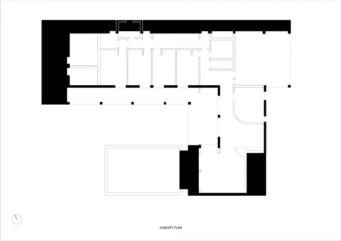 The new configuration is achieved through new volumes that are attached to the existing building in the continuity of existing plans and replicating the geometry of coverage plans, but distinguishing itself through its singular materiality.