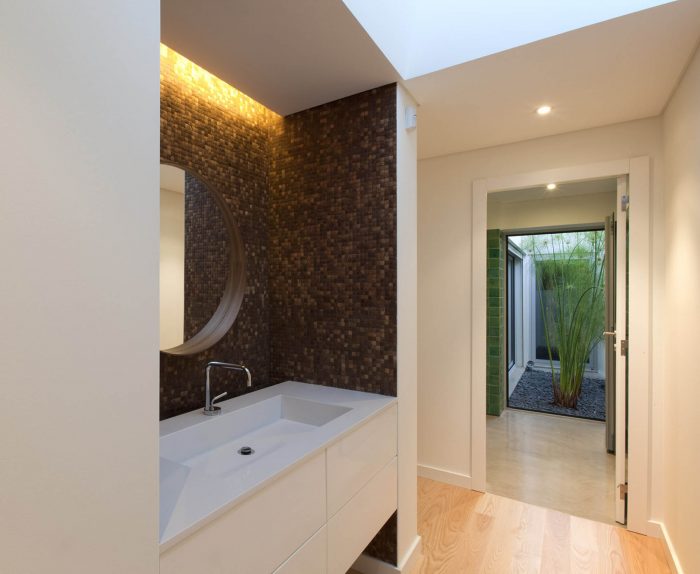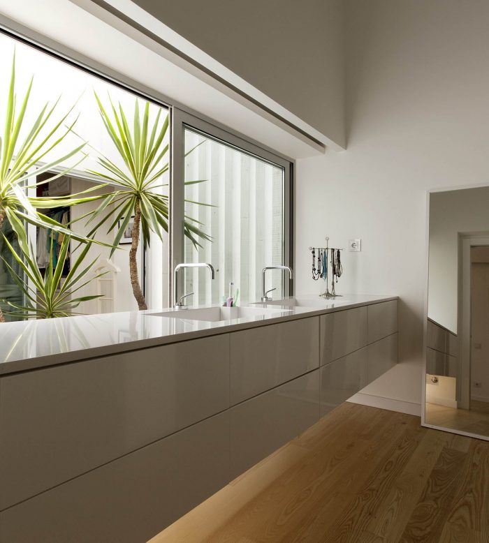 更多的限制区域来自于三个卧室的线性分布,最后一个是房子的主卧室,在那里一个新的体积接收厕所、更衣室和它们之间的一个小天井,负责这两个空间的照明和通风。