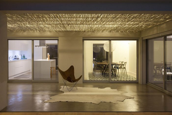 Insert the "patio" as an additional element in the resolution of issues associated with natural lighting and ventilation of the house, exploring simultaneously the crossing visual relations;