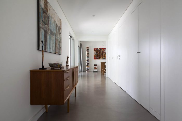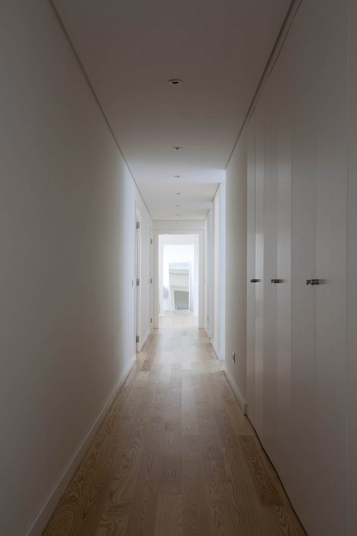 Still in the entrance area the office/library allows to open or close itself, compressing or dilating this area, with it being possible, in the future, to integrate it in the bedroom wing.